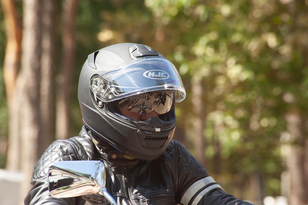 La visière teintée, c’est bien pour le style mais pas évident pour rouler en pénombre ou en nocturne. Une visière claire non teintée, c’est impossible sans le port de lunettes de protections solaires. Les deux cumulées, ce n’est pas pratique, il faut avoir avec soi ses lunettes de soleil (indice de protection catégorie 3 maximum), elles peuvent s’embuer ou avoir des difficultés à s’accommoder du port du casque. La solution imparable est donc d’opter pour un casque avec lunettes solaires escamotables.